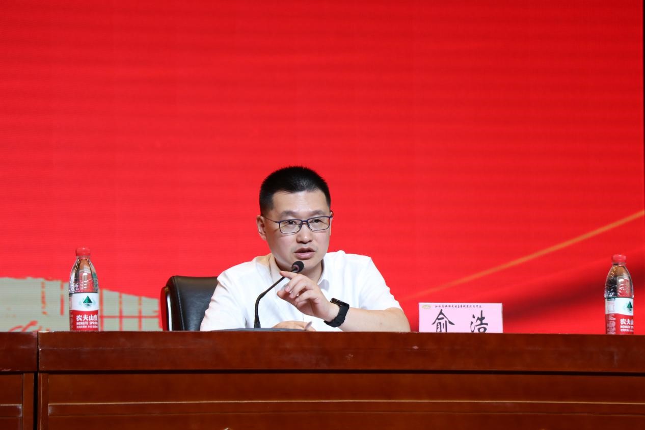 俞浩副院长向各位新生介绍了机电工程学院的专业设置、专业建设以及提升学历的途径和方法,鼓励在校期大家能够多获荣誉,争取到更高级别的荣誉,努力提升自己。