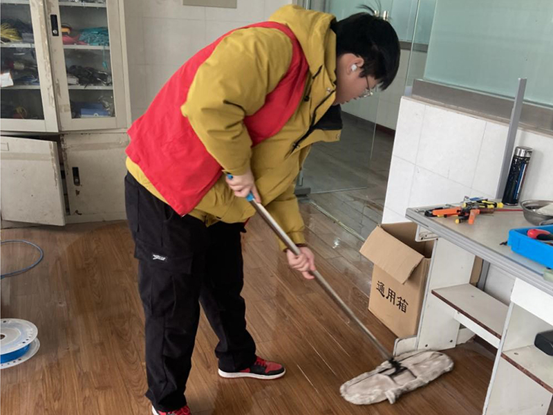 3月6日,231321班级同学到求实楼508实训室进行实训室的卫生打扫和物品整理工作。该实训室近期未使用,里面物品摆放凌乱,灰尘很厚。同学们扫地、擦门窗、摆放物品、擦桌子、拖地,经过热火朝天的劳作,换来了窗明几净,物品合理归置。