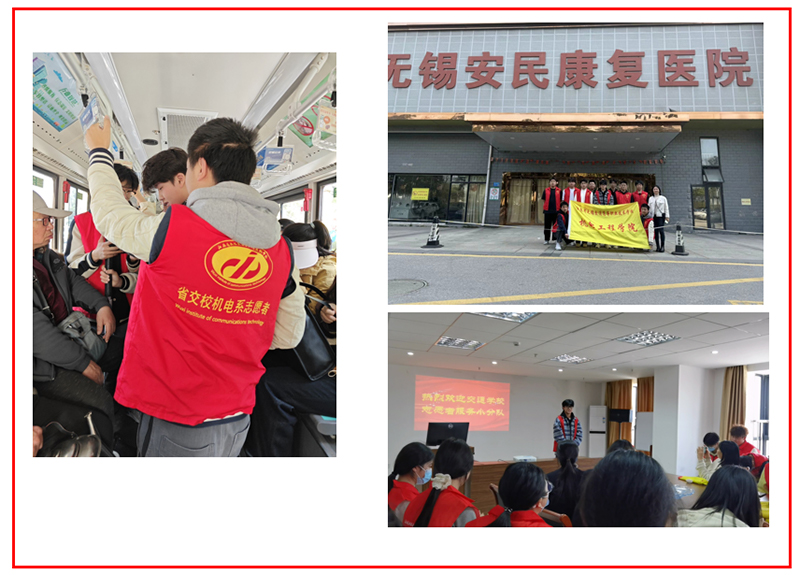 3月22日,222311班的学生们在班主任孔喜梅老师的带领下与物流学院的志愿者们一起参加了赴安民康复医院学雷锋志愿活动,从此次活动中展现出了积极的参与和奉献精神。在无锡安民康复医院,同学们与患者们共度美好时光,为社会贡献自己的一份力量。