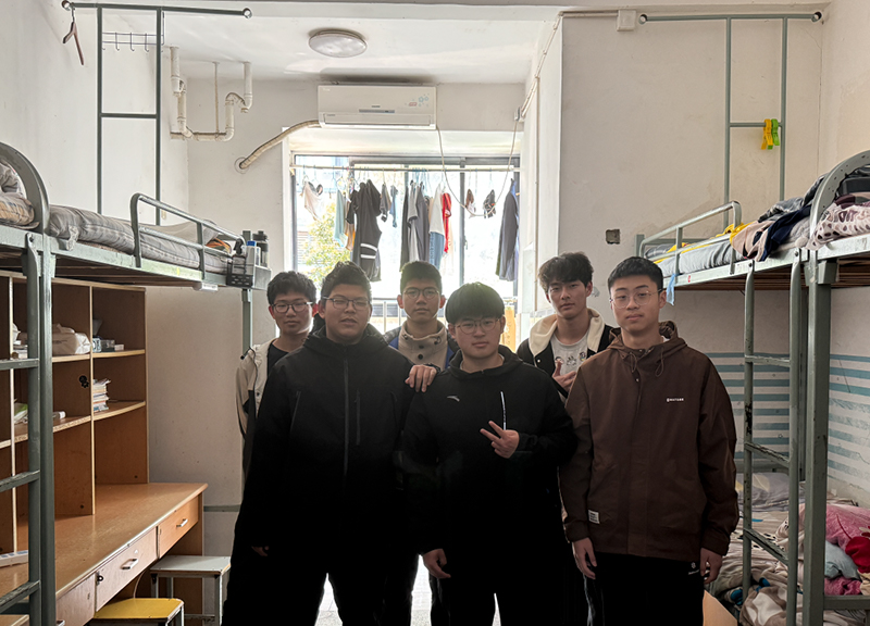 每天清晨,当广播号声尚未响起,作为生活委员兼寝室长的魏子奥同学已早早起床,轻手轻脚拿起墙角的扫帚,把地面和卫生间清理干净。随着铃声响起,其他成员也陆陆续续收拾好属于自己的一方床铺。家有家法,舍有舍规,B123不成文的小规则就是,最后洗漱完的同学负责用干抹布把瓷砖上的水珠擦干。下铺的王睿是宿舍的“检查者”,每次离开宿舍之前,他会依次检查大家的床铺,地面的垃圾,以及鞋子的摆放。即使是在归家心切的周五下午,大家也不忘带走最后一袋垃圾。事不在小,贵在坚持,窗明几净的居住环境,透露着同学们勤于劳动的品质和对生活品质的追求,更彰显了可贵的责任心。