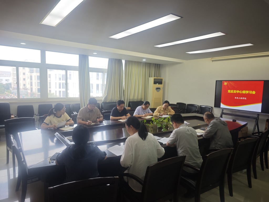 20251015日,机电工程学院党总支中心组召开专题学习会,深入学习习近平总书记在纪念中国人民抗日战争和世界反法西斯战争胜利80周年系列活动中的重要讲话、重要批示、重要文章精神。学校党总支书记主持会议并讲话,全体中心组成员参加学习。