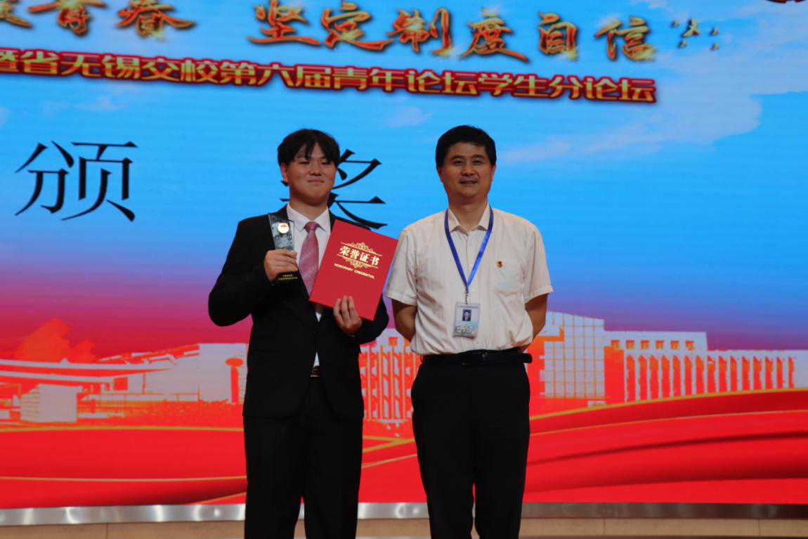 63日下午15:00,在校大礼堂举行了“绽放战役青春 坚定制度自信”主题团日活动暨生无锡交校第六届青年论坛(学生组)。我院171321班陈仕杰和171322班孙梓源两名同学参加了此次论坛。
