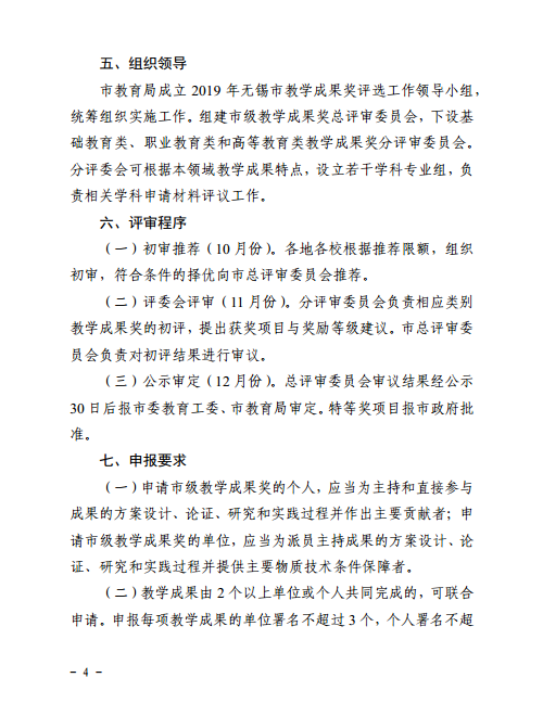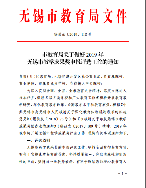 (转)市教育局关于做好2019年无锡市教学成果奖申报评选工作的通知