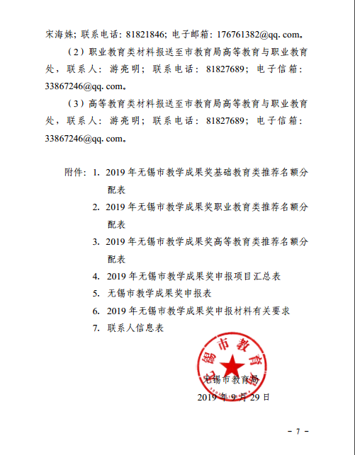 锡教函〔2019〕118号 市教育局关于做好2019年无锡市教学成果奖申报评选工作的通知(依申请公开).pdf