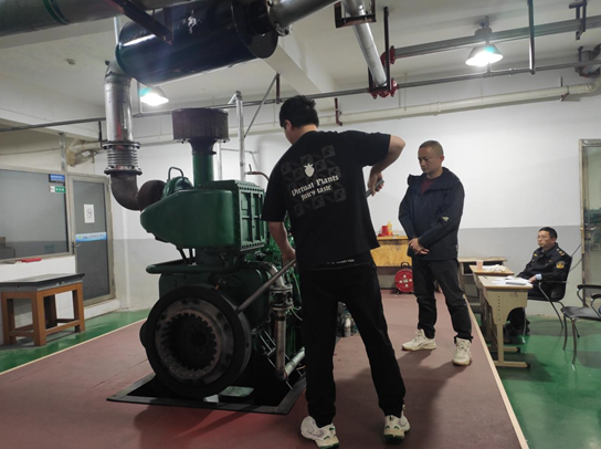 我校作为江苏省内河航运人才培养的重要基地和全省内河一类轮机实操考点,考评组严格依据《内河船舶船员适任实际操作考试规范》,依托校内高标准轮机实训中心先进设施设备,考评组重点对“设备操作管理、故障诊断、应急应变、设备检修”四大核心模块进行考核。考生在模拟真实船舶机舱的沉浸式环境中,完成机电设备管理、故障排除及检修等标准化操作,充分展现岗位核心技能。