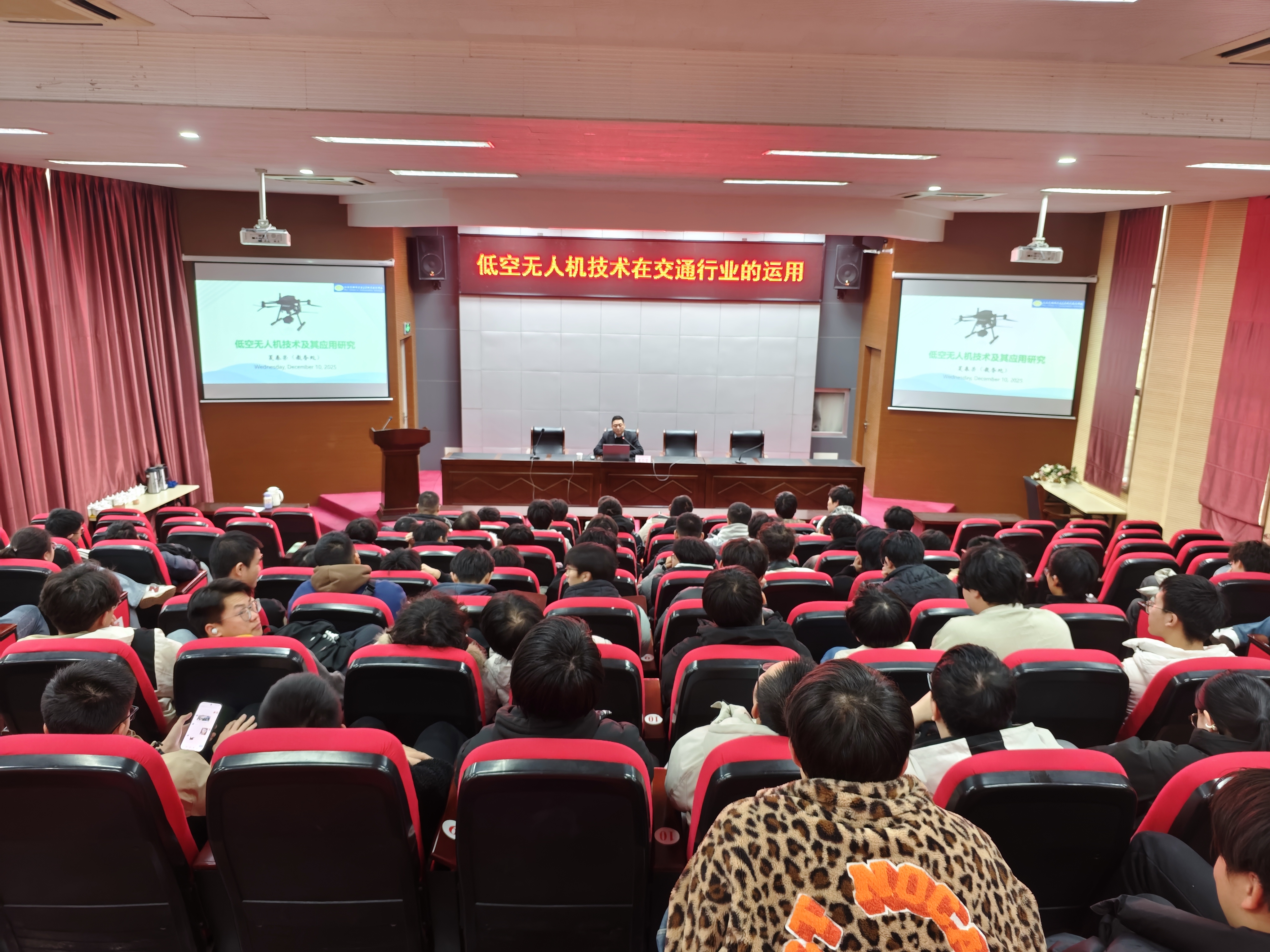 12月10日下午,教务处处长夏春荣教授为全校师生做“低空无人机技术在交通行业的应用”专题讲座,150多名师生到场聆听。