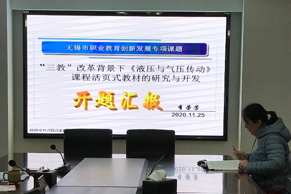 会议对茹新宇老师主持的重点课题新基建背景下五年制高职专业改造与创新研究——物流管理专业为例”、郑军武老师主持的“汽车领域1+X 证书制度的实践研究”、李荣芳老师主持的“三教”改革背景下《液压与气压传动》课程活页式教材的研究与开发”两一般课题进行了开题论证。