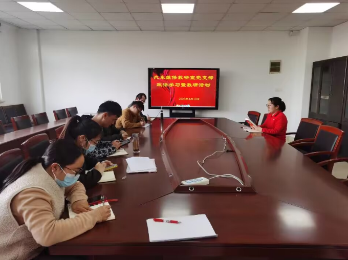 2023年3月10日,汽车维修教研室党支部在学院204会议室开展了政治学习和教研活动,教研室全体党员和教师学习了《党的二十大报告学习辅导百问》“如何理解习近平新时代中国特色社会主义思想的主要内容”、“如何理解坚持和发展马克思主义必须同中国具体实际相结合、同中华优秀传统文化相结合”等内容,学习了 “基层党建在线-2023年第5期”。与会人员还对本学期教研活动计划和活动方案进行了讨论。