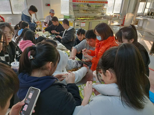 活动期间,同学们积极动手参与,相互帮助,现场满是节日气氛与师生温情。食堂的工作人员也被热闹气氛所感染,参与其中,耐心的给大家现场教学了不同饺子的包法,让同学们更加感受到包饺子的乐趣。