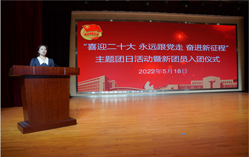 活动在庄严的国歌声中拉开帷幕。入团仪式上,各学院团总支书记为新团员代表颁发团员证,佩戴团徽,并组织老团员重温入团誓词,新团员进行入团宣誓,全体人员共同接受了一次思想的升华和心灵的洗礼。新团员吴沁尧同学、老团员李丹凤同学作为代表发言,她们均表示紧跟习近平总书记“把青春献给祖国”的号召,坚定不移的高举团旗跟党走。不负韶华、不负时代、不负人民,敢闯、敢干,以青年人的拼搏努力,来践行“请党放心,强国有我”的铮铮誓言。