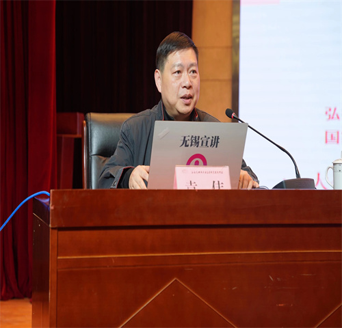 动员会上,学校还邀请了无锡市委讲师团副团长袁伟为青年师生作辅导报告。他以《乘风破浪 行稳致远——以中国式现代化全面推进中华民族伟大复兴》为题,围绕大会概况、理论阐释和总结概括三个方面对对党的二十大报告作了深入系统的解读与阐释。授课内容系统全面、内涵丰富、分析透彻、契合实践,为全体青年师生深刻理解和准确把握党的二十大精神提供了思路和指导,大家专注听讲,认真记录,受益匪浅。