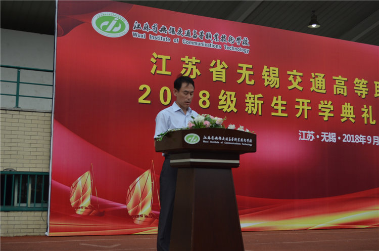 2018年9月10日,江苏省无锡交通高等职业技术学校“2018级新生开学典礼暨开学第一课”在学校操场举行。全体校领导、各处室主要负责人、各学院领导班子成员、新生班主任、教师代表和1400余名新生参加。大会由党委书记李虎主持。