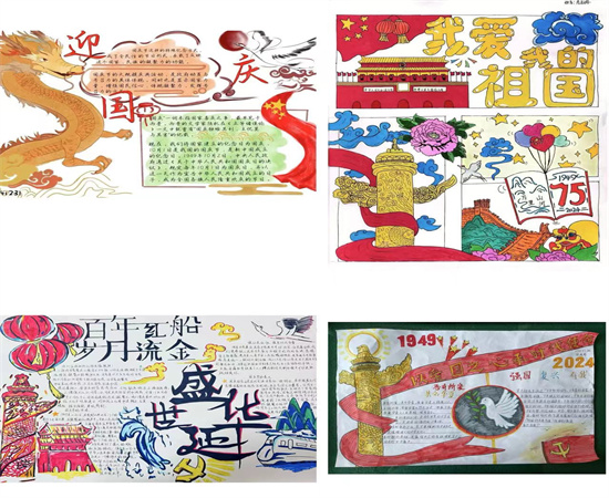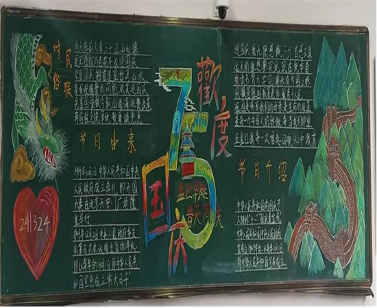 各班精心选材,细心编排,以画衬字,以图配文,同学们发挥想象用心描绘,一张张手抄报黑板报都别有风采,展现出我校学生良好的精神风貌和对祖国母亲深深的祝福。