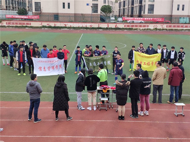 2018年12月5日的校足球赛的冠亚军争夺赛中,卫冕冠军交通工程学院足球队表现出色,战胜了老对手机电工程学院足球队,实现了校足球联赛的四连冠。赛后的颁奖仪式中,学工处副处长熊睿老师、机电工程学院党支部书记徐小国老师共同为本次比赛冠军颁发了奖牌和奖杯。