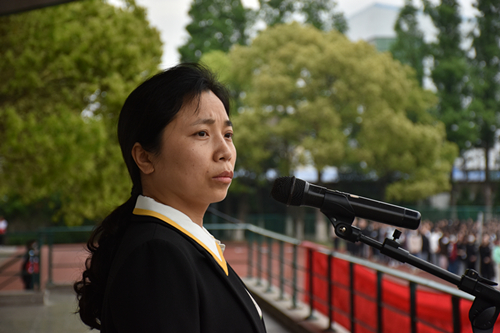 升旗仪式由学生工作处处长、团委书记吴雪琴主持。