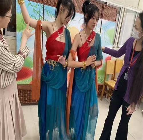 "敦者大也,煌者盛也;大而盛者谓之敦煌。大梦敦煌 盛世和光”汉服社和淑女堂同学们在指导老师傅彩虹、王涛老师的带领下,认真排练舞蹈《一梦敦煌》。
