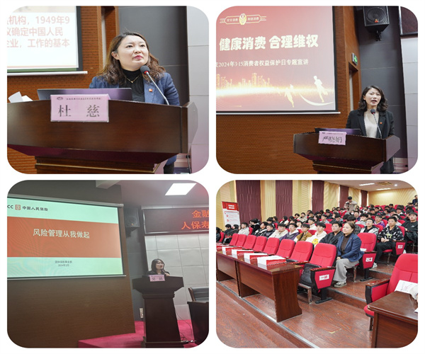 在第42个消费者权益日来临之际,为科普金融安全知识,普及金融消费者八大基本权利提升青年学生金融素养和风险防范意识,传递健康、文明、理性的消费观念,3月12日下午,人保寿险无锡中支来校开展“金融消保在身边 保障权益防风险”金融消费者权益保护教育宣活动。校领导、人保寿险无锡公司领导出席活动,200多名学校师生参与。