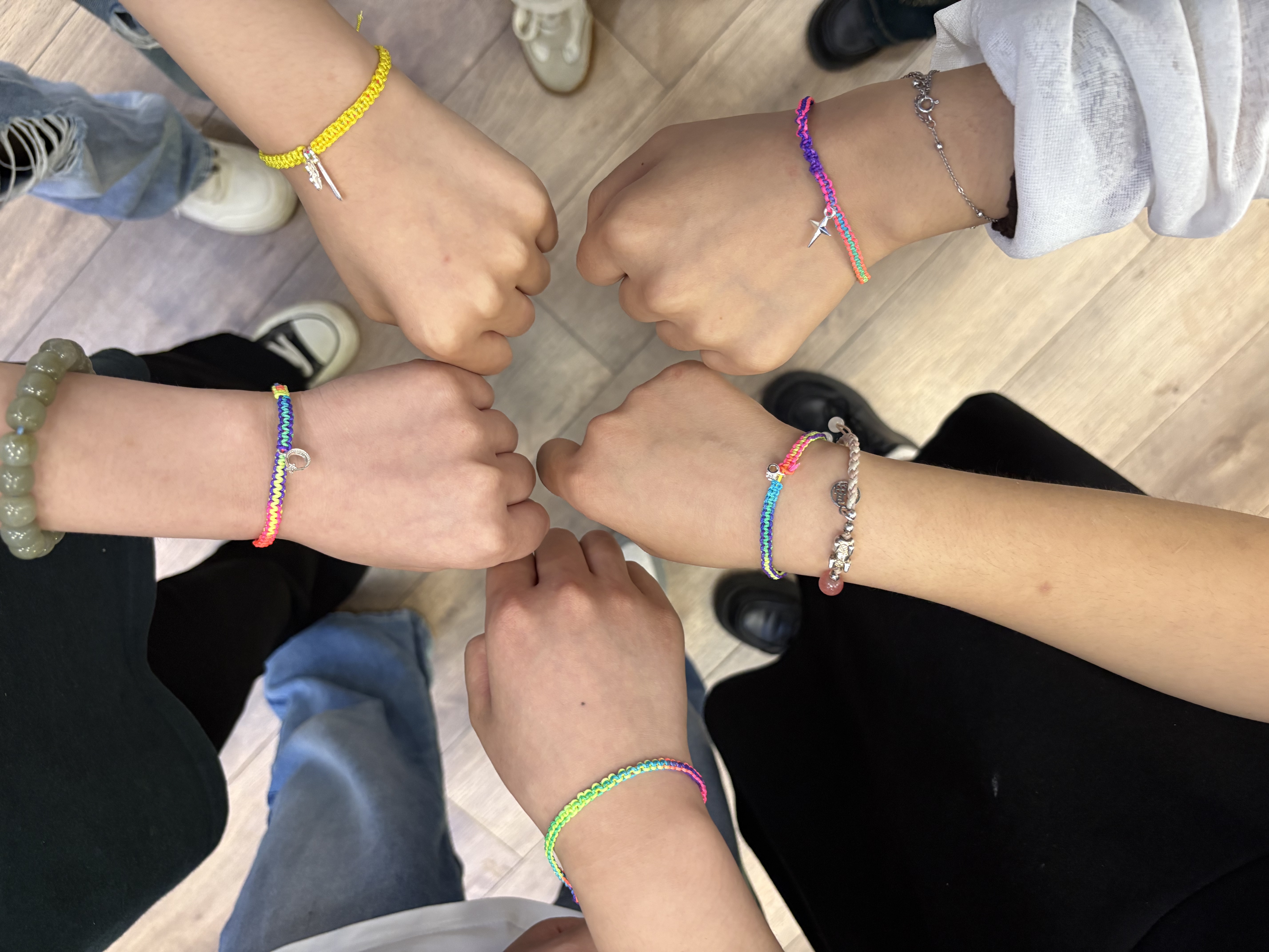 活动伊始,陈婷玉同学详细介绍了端午节丰富习俗与深厚寓意,从五彩绳象征的祈福纳吉到香囊的驱蚊避秽功能,使同学们对端午文化有了更深入认知。在徐卉同学的演示下,大家纷纷拿起五彩线,或两两合作,或独立钻研,将丝线缠绕、打结,织就一条条饱含心意的精致手链。香囊制作环节同样精彩,桌上摆满艾草香料,同学们精心挑选款式,填入草药,现场洋溢着欢声笑语。